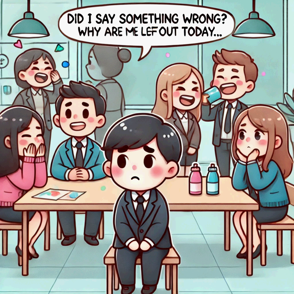 • 철수의 감정: (Insecurity)을 느끼며, “다들 내가 무능력하다고 생각하면 어떡하지?”라고 고민합니다.