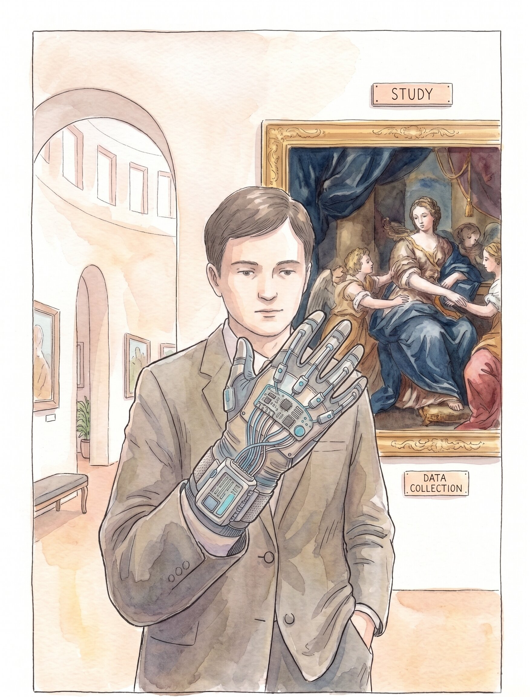 마르틴 트뢴들레(Martin Tröndle) 교수가 이끄는 연구팀은 미술관을 방문한 373명의 성인 관람객들에게 특별한 전자 장갑을 착용하도록 요청했습니다.